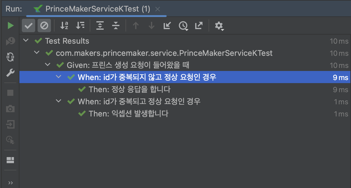 테스트 결과도 Given, When, Then으로 중첩되서 보여지기 때문에 가독성이 좋습니다
