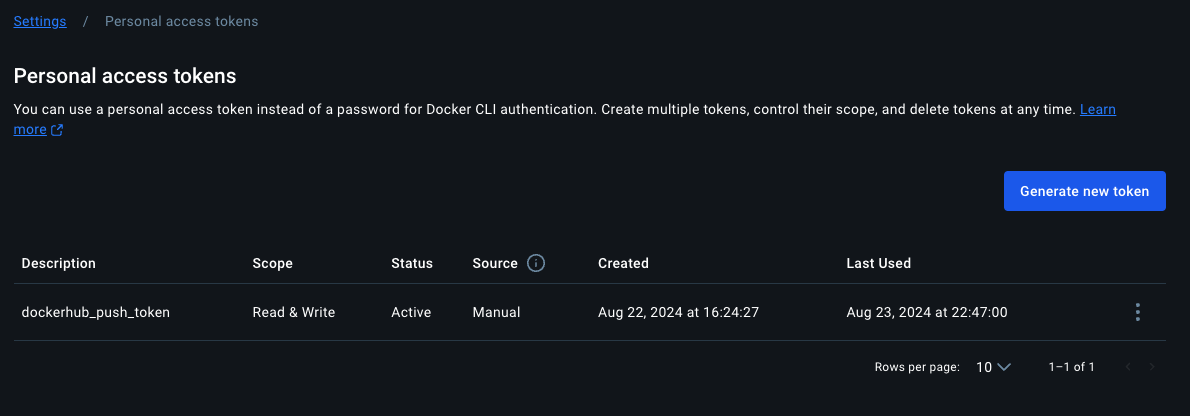 Learn how to create and manage your personal Docker access tokens to securely push and pull images programmatically.