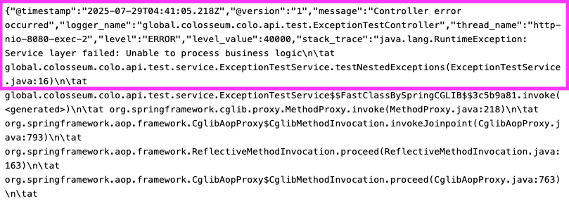 at ExceptionTestService.deepServiceMethod(ExceptionTestService.java:45)