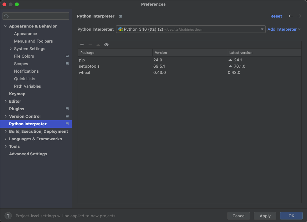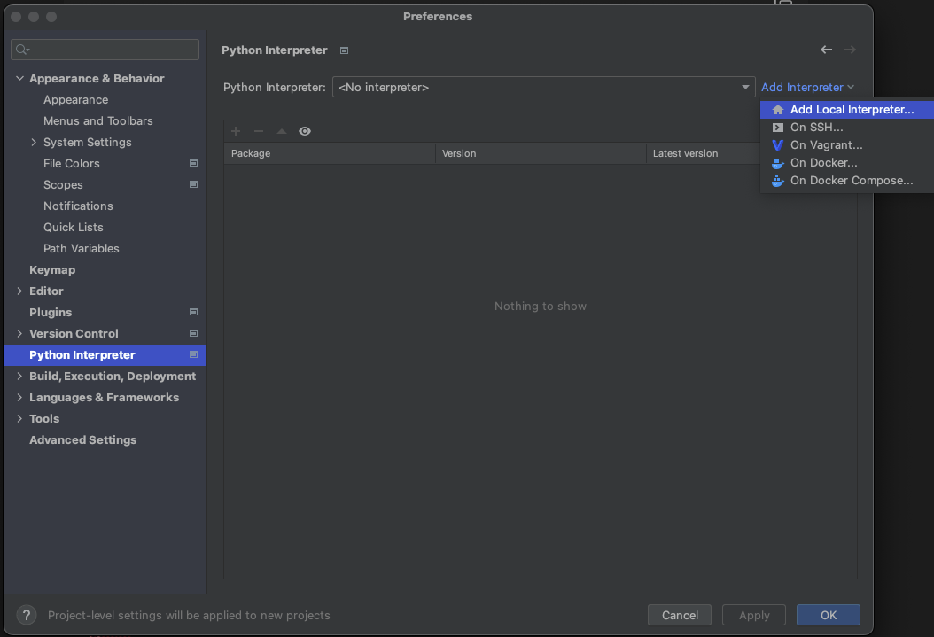 Python Interpreter > Add Interpreter > Add Local Interpreter...